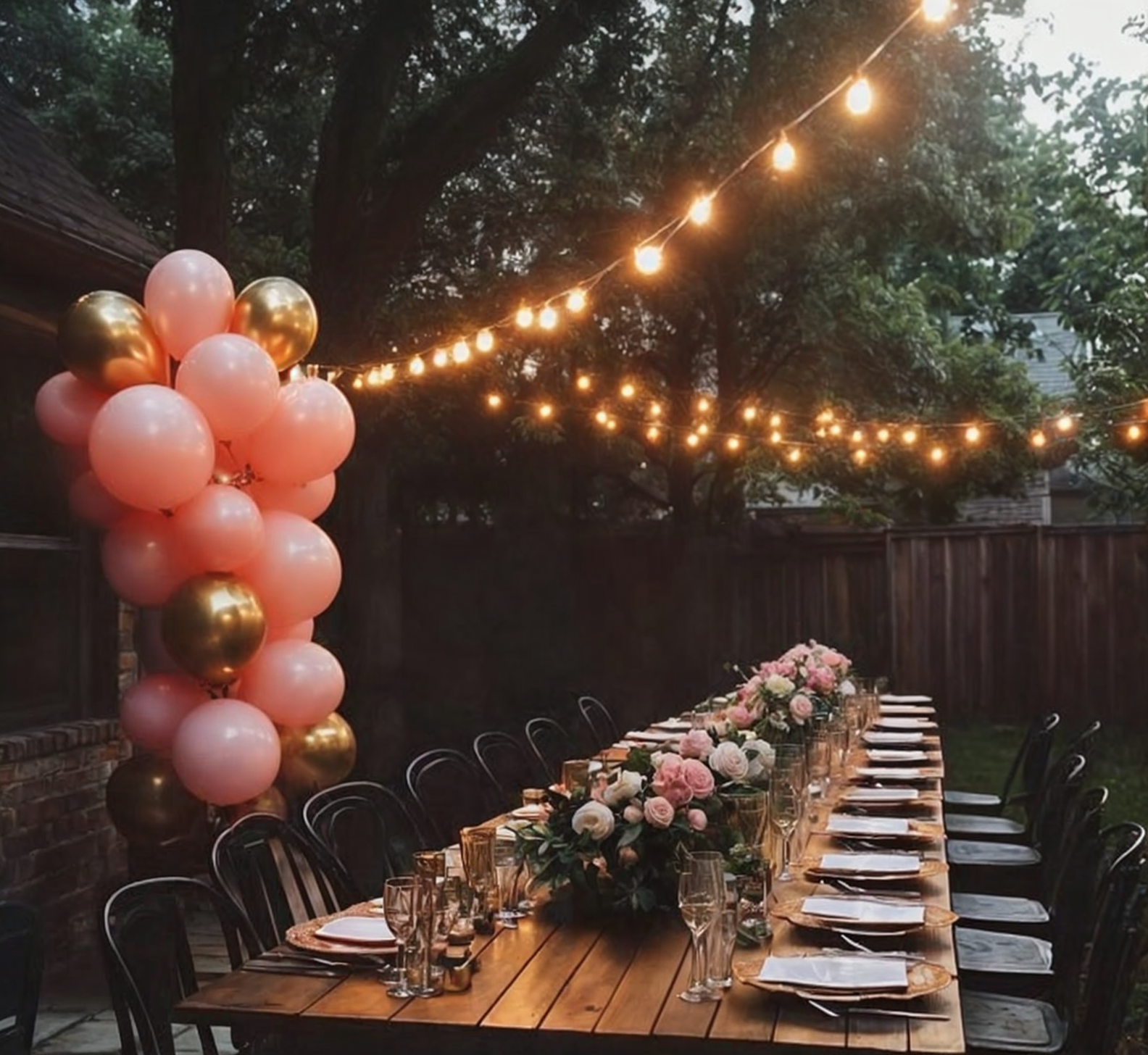 Le vendredi soir, j’ai passé des heures à préparer la décoration : ballons roses et dorés, guirlandes lumineuses, et centres de table fleuris. Le jardin de Sophie ressemblait à un décor de film romantique.