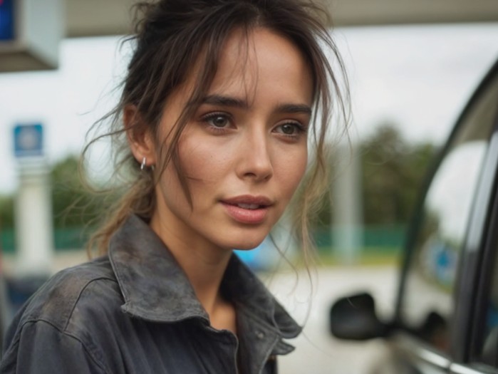 Alors qu’elle travaillait, elle remarqua qu’une voiture venait de s’arrêter à la station-service. Elle s’en approcha et demanda :