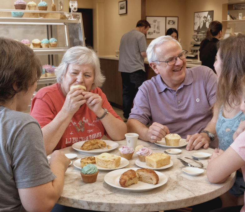 Le samedi suivant, j’invitai toute la famille à une “dégustation privée”. Ils vinrent nombreux, impatients. Devant eux, j’apportai des assiettes dressées comme dans un grand restaurant… mais avec une seule miette de gâteau. Des tasses avec une unique gorgée de café.