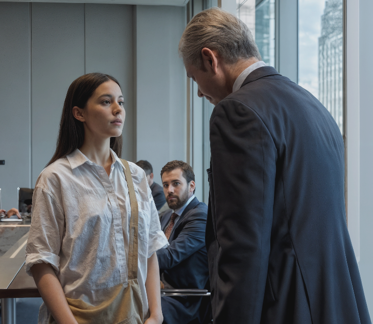 Elle entra pour un entretien au sein d’une des plus puissantes maisons de la finance. À peine assise, sa chemise en lin fut raillée—« un chiffon de femme de ménage », lança un jury goguenard qui la traita d’imposture. Son CV, pourtant impeccable, fut déchiré dans un ricanement. « Vous n’êtes pas une meneuse. Allez nous chercher un café. »