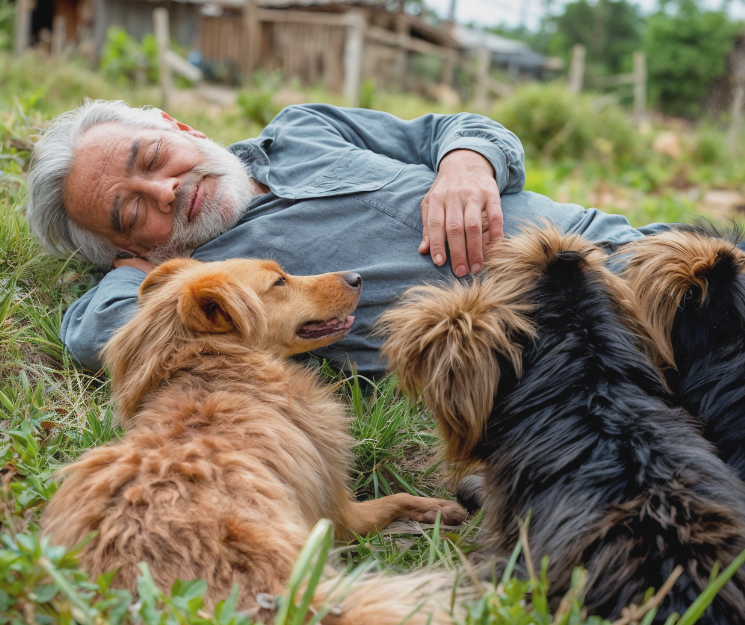 Il allait jusqu’au petit bois, là où, dans les buissons, vivaient ses « protégés » — trois chiens errants, chassés mais pas abattus. Ils l’attendaient. Tous les jours. Comme s’ils savaient l’heure. Ils surgissaient d’entre les arbres, plissant les yeux à cause du soleil, agitant leurs queues maigres, comme pour dire : « On est là. On tient. Grâce à toi. »