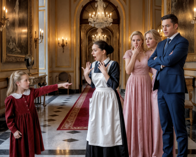Richard Lancaster, magnat habitué à imposer sa volonté dans les conseils d’administration et à signer des contrats à plusieurs milliards, resta comme figé. Sa fille de six ans se tenait au milieu du sol en marbre, le regard sérieux, le doigt tendu… vers Clara, l’une des employées de maison.