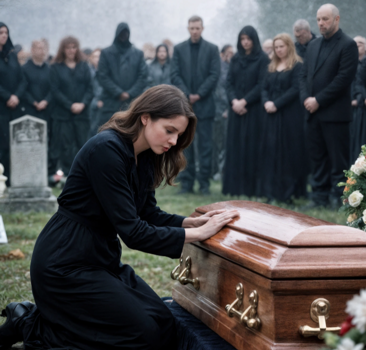 Au cimetière, tout respirait le luxe : cercueil somptueux, montagnes de fleurs fraîches, foule dense, photographes collés aux allées. Et surtout, la veuve, très « effondrée »… à ceci près qu’elle chuchotait avec une énergie suspecte à un homme bien habillé, juste à côté du cercueil.